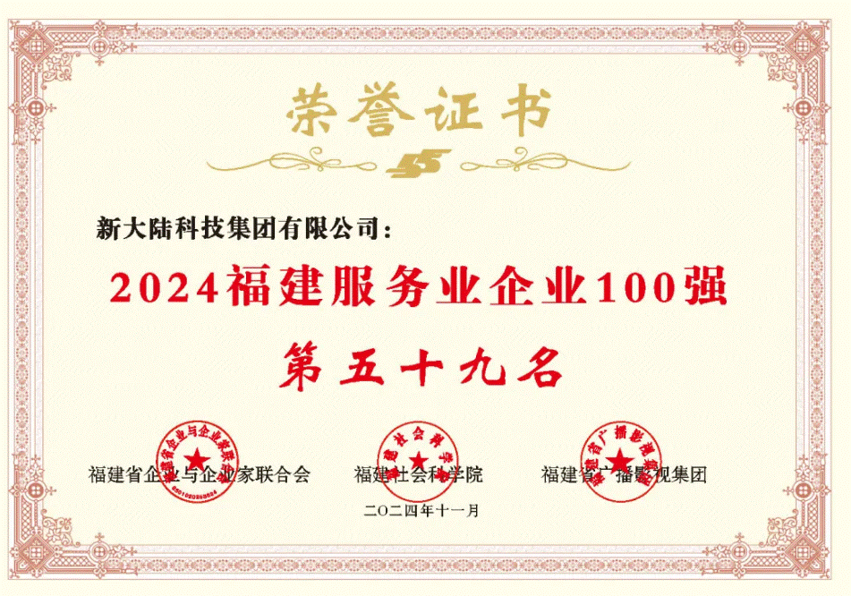 11月8日,2024福建企业100强发布大会暨福建企业发展专题讲座在福州召开。大会以“全面深化改革,争创一流企业”为主题,公布了2024福建企业100强榜单,包括“2024福建企业100强、福建制造业企业100强、福建服务业企业100强、福建战略性新兴产业企业100强”等四个榜单。米兰·(milan)连续六年入围榜单,米兰·(milan)科技集团荣登2024福建服务业企业百强榜单,位列第59名;米兰·(milan)支付技术公司荣登2024福建战略性新型产业企业百强榜单,位列第48名。