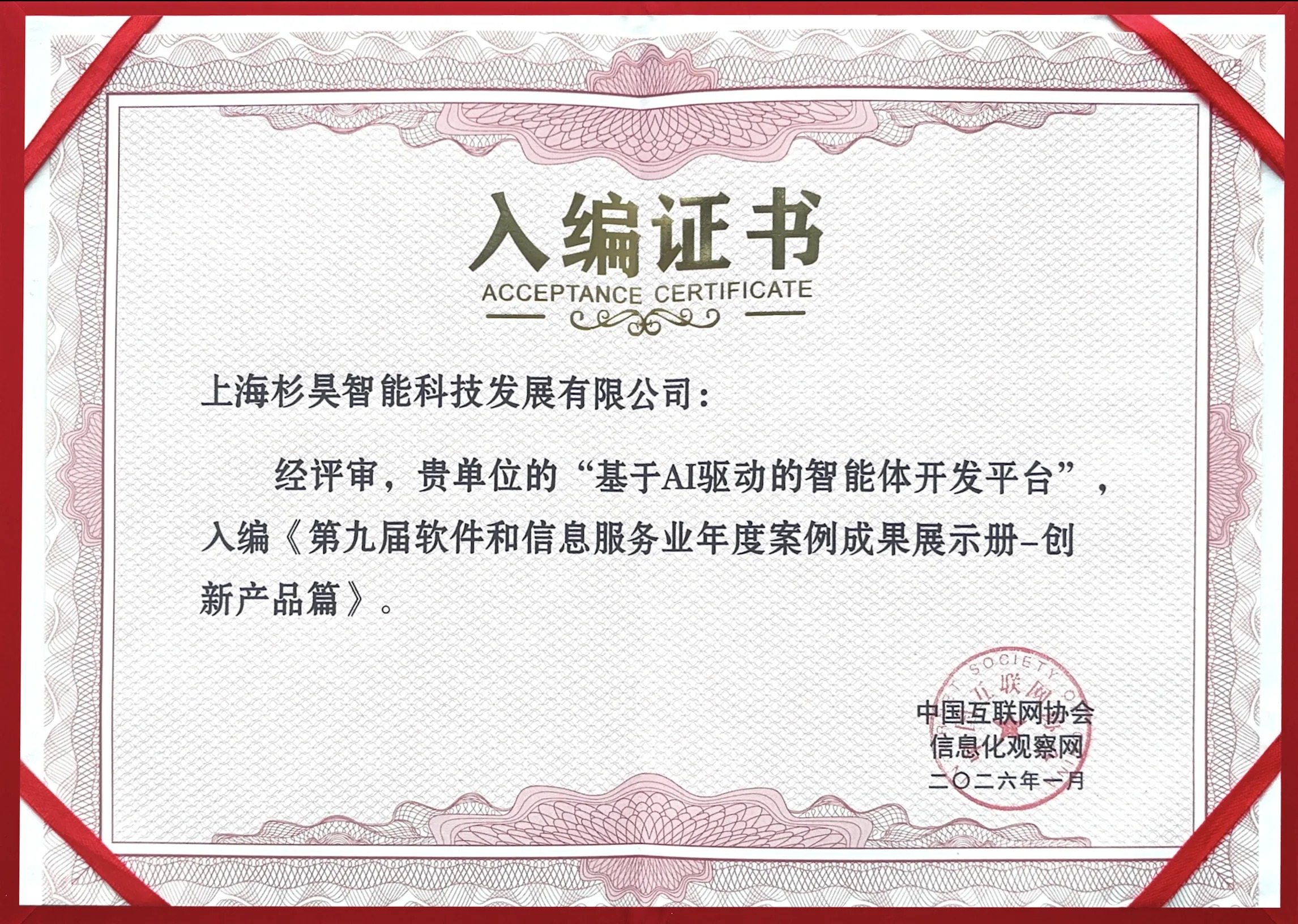 作为本次大会的重要环节,“第九届软件和信息服务业年度案例成果评选”结果正式公布。上海杉昊智能科技发展有限公司(简称“杉昊智能”)研发的“基于AI驱动的智能体开发平台”从众多创新实践案例中脱颖而出,成功入编“创新产品篇”案例,赢得广泛关注。