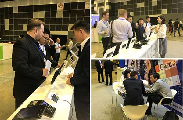 作为亚太第一大POS供应商,公司海外主流产品遍布亚太多个国家和地区,许多客户表示对我们现场展示的产品如手持无线POS-SP600,手持智能POS-N910,mPOS-ME30S等都不陌生,因为在很多支付场景中都能发现它们的身影。